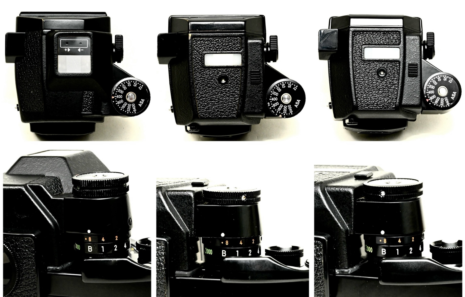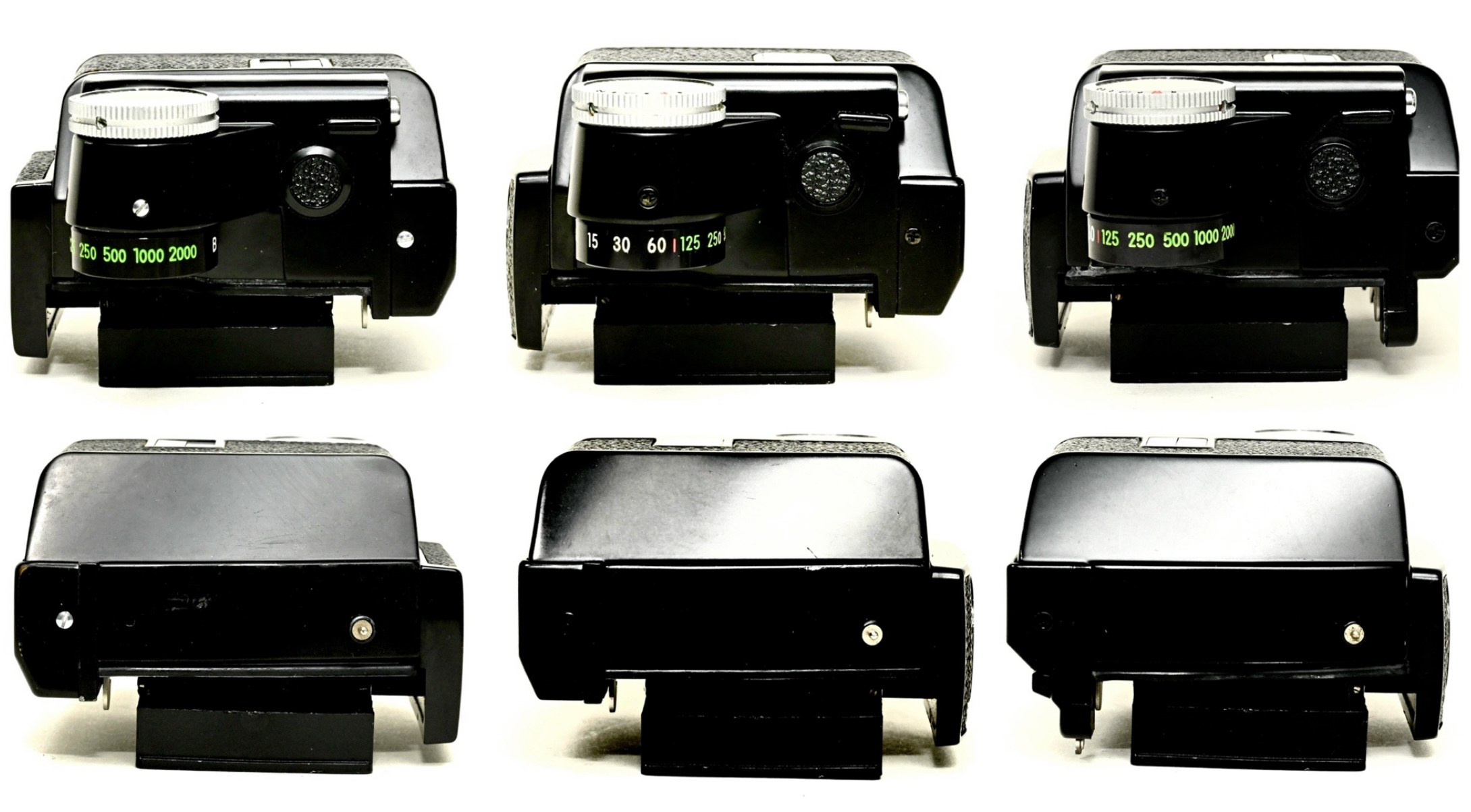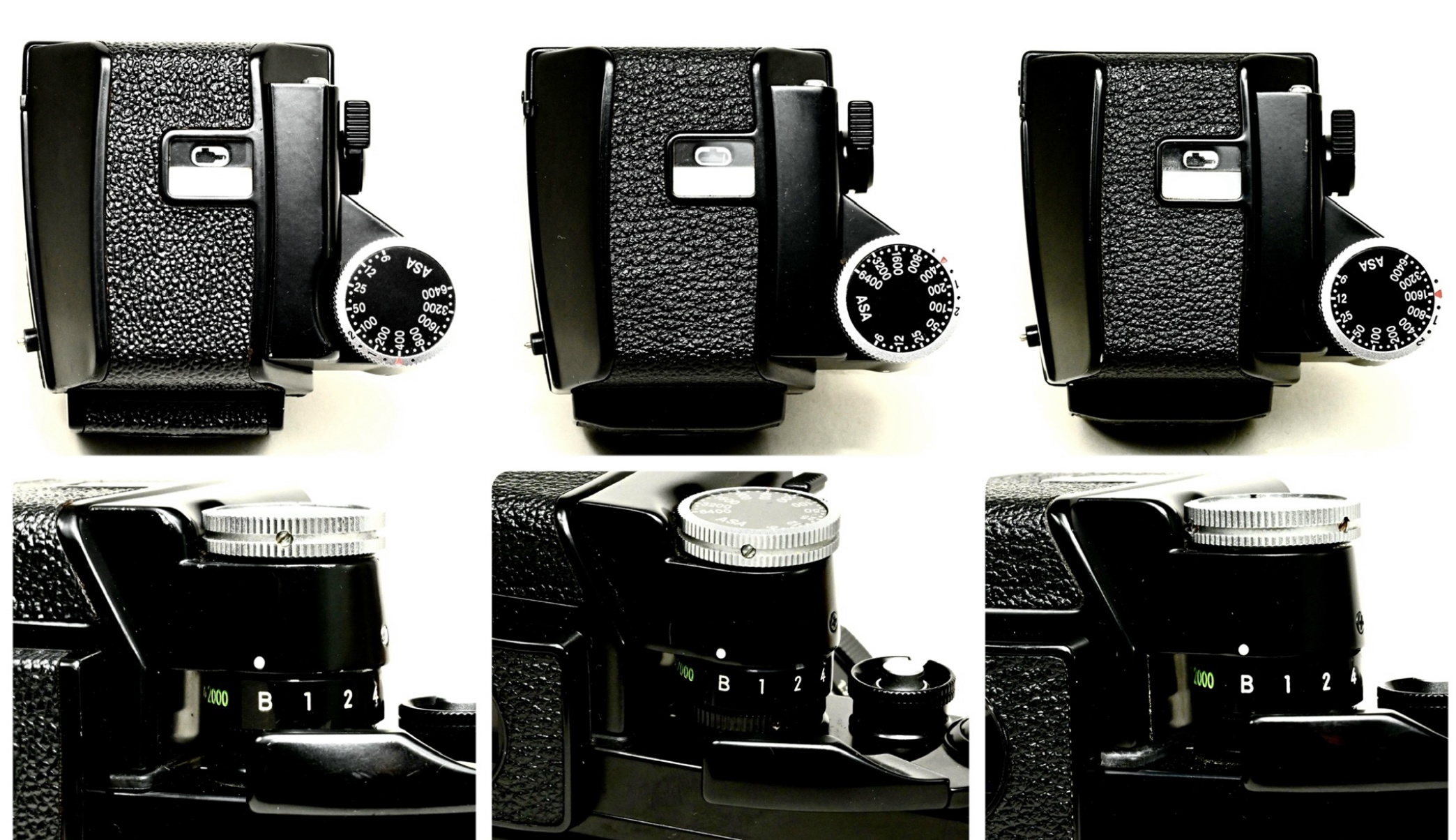 最後に、上面とシャッタースピードダイヤルの接合部分です。露出表示が針のフォトミックファインダーはバルブと1/2000秒〜1秒までです。