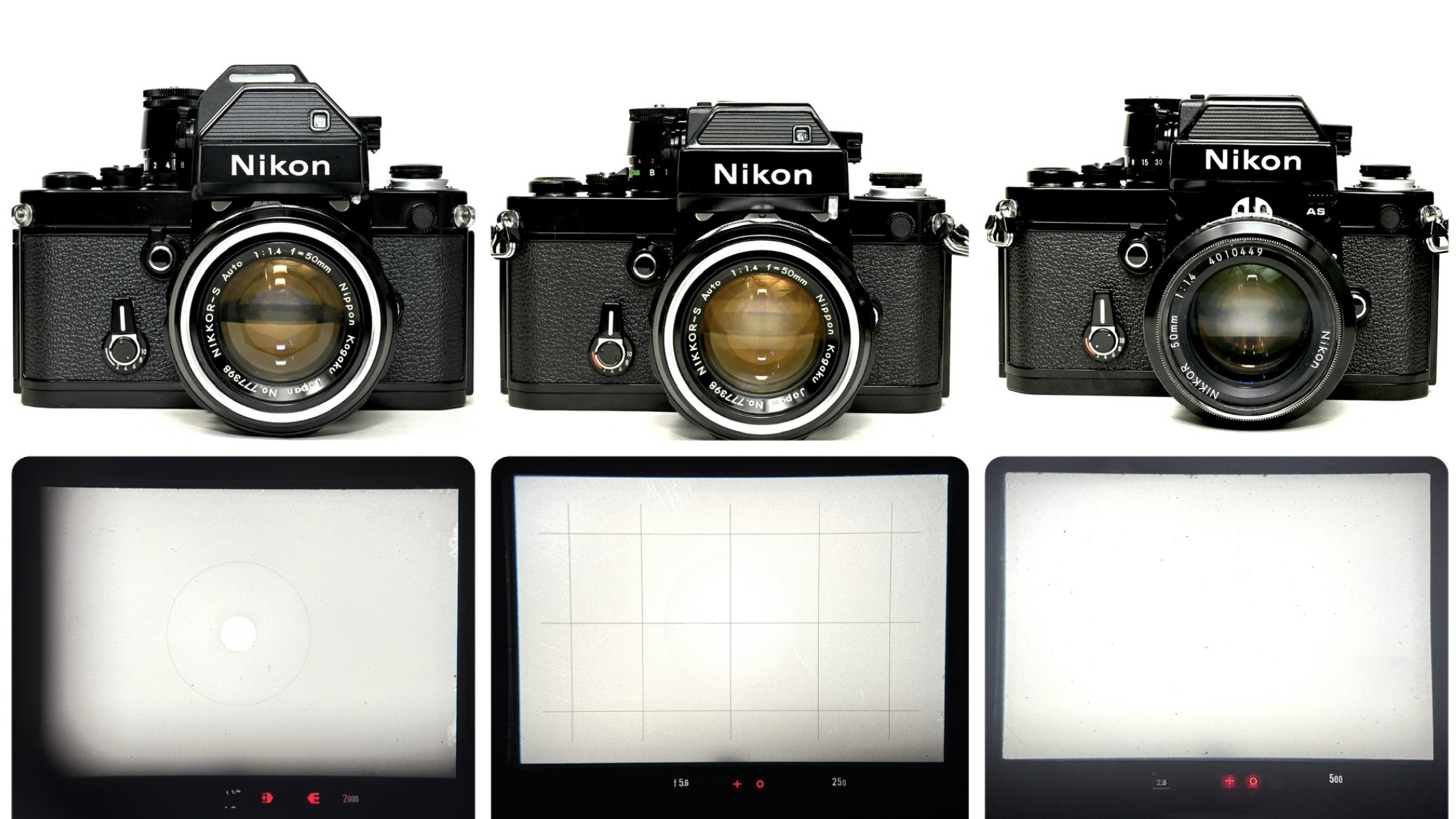 F2ボディー付正面とファインダー内の画像です。