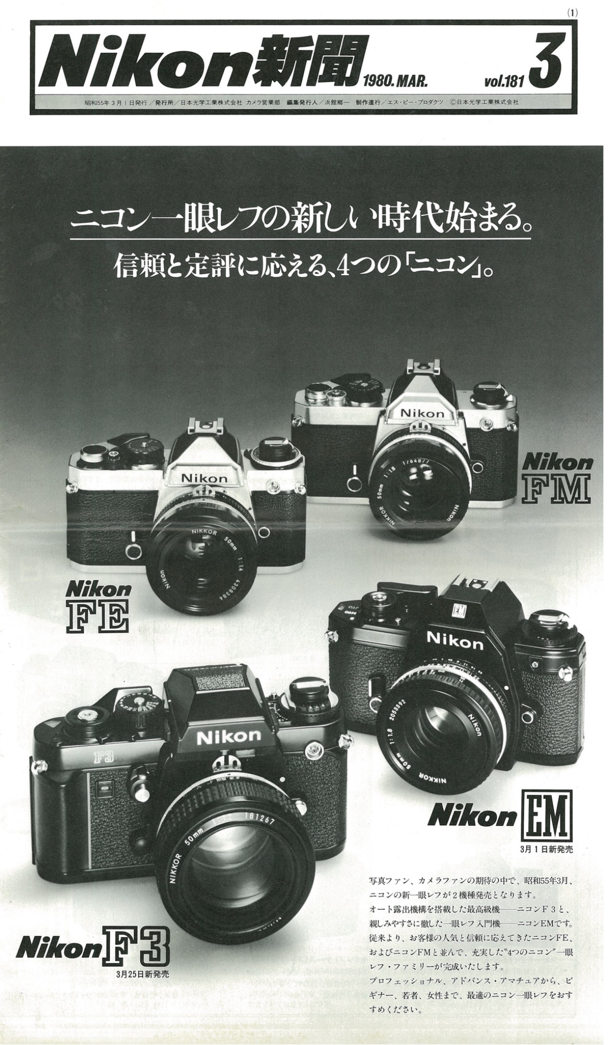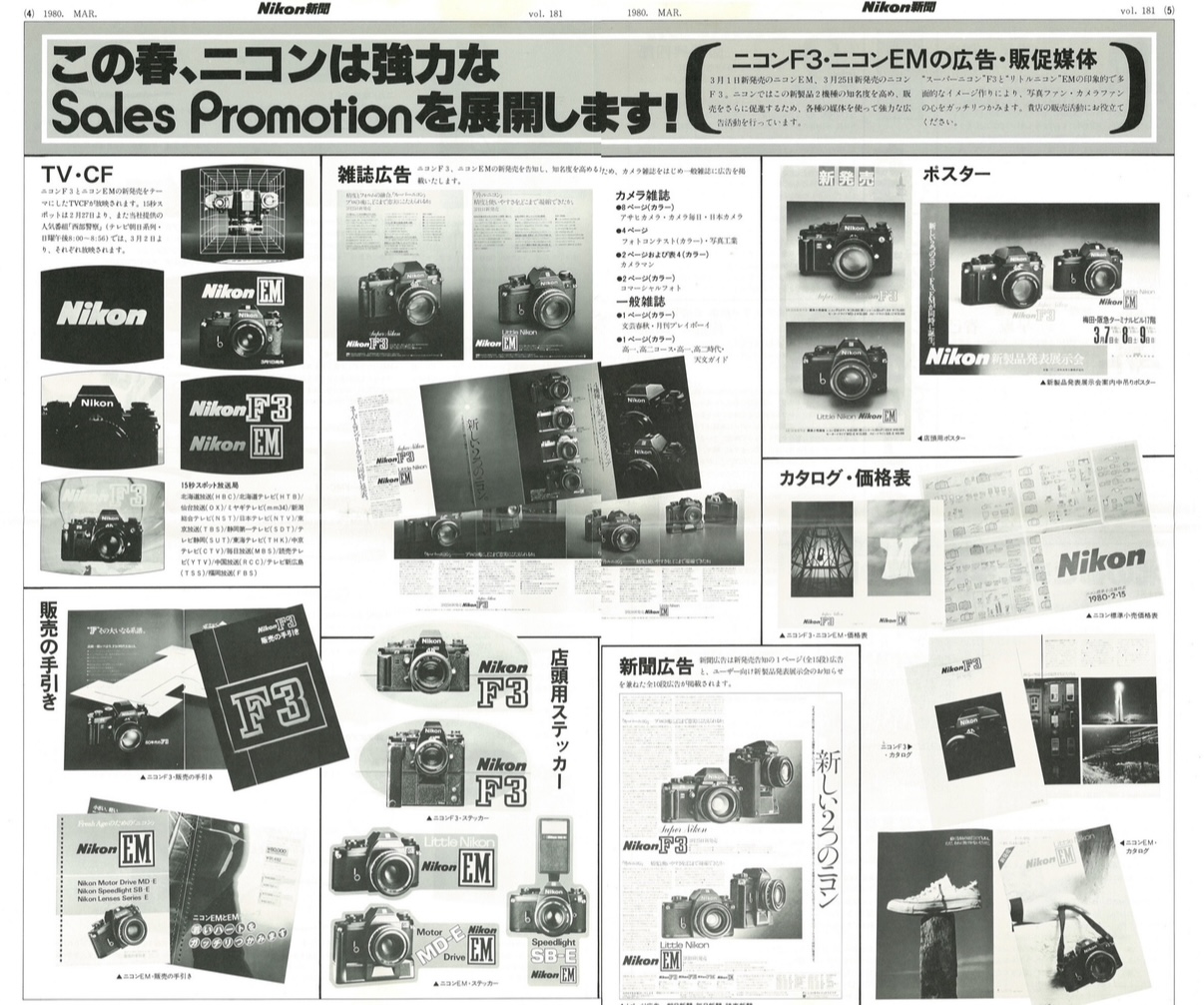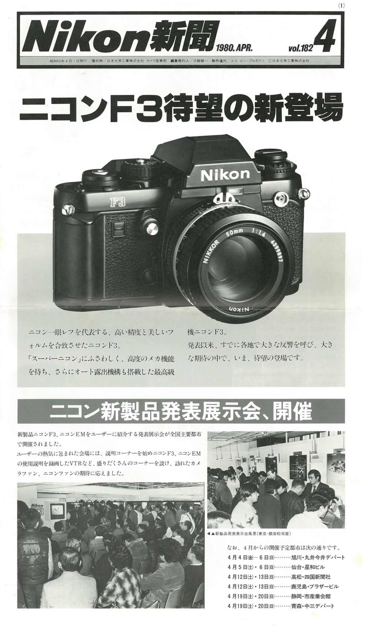 ニコン新聞とは、当時ニコンが流通業界向けに発行していた広報誌です。F3発売に伴う販促活動を見ることが出来ます。