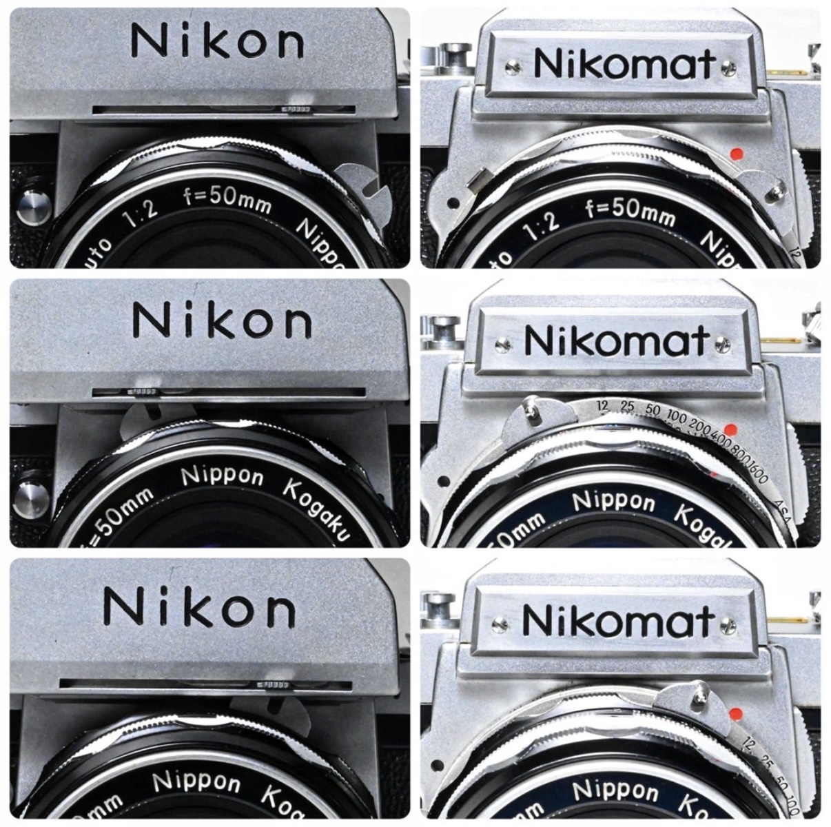 ガチャガチャの詳細は以下に記載しますが、ガチャガチャをする機構は、フラッグシップのF、F2のフォトミック系とニコマート系とに、大きく二つに分かれます。そのため、ここではその二つの比較の視点も入れて見てみます。