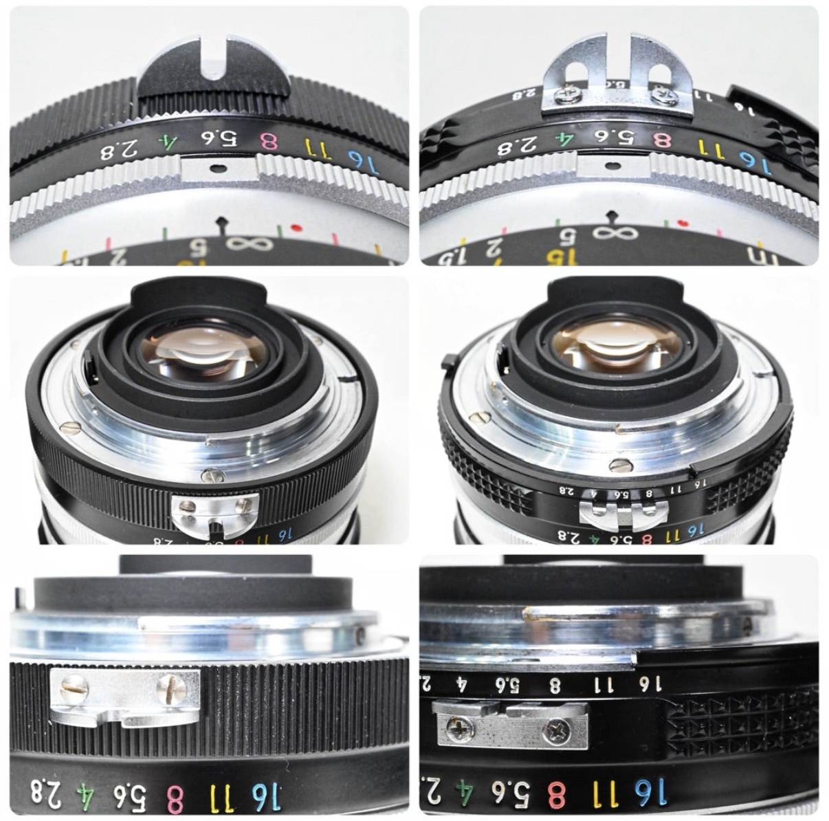 AiレンズとAi前のレンズの対比をしてみました。左側がAi前のレンズで、右側がAiに改造したレンズです。