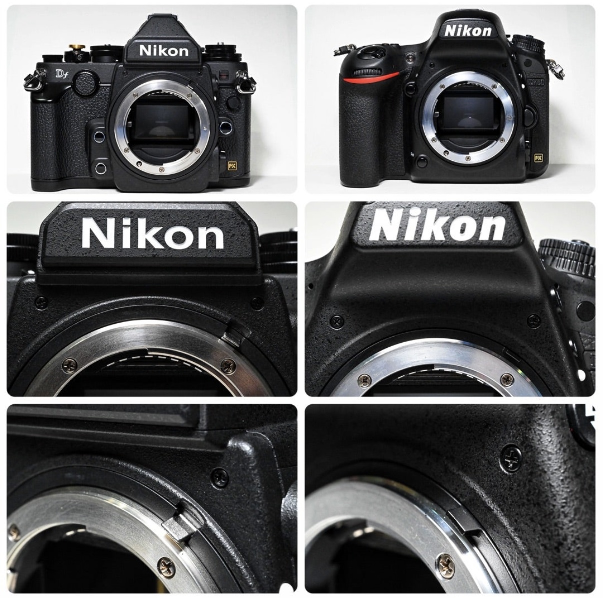 ①のDfと②代表のD750を比較してみます。デジタルの時代で非CPUのAiレンズを使用する場合、露出計連動レバーは付いているのですが開放F値はボディーに「伝達」されないので、セットアップメニューの「レンズ情報手動設定」画面から入力してする必要があります。